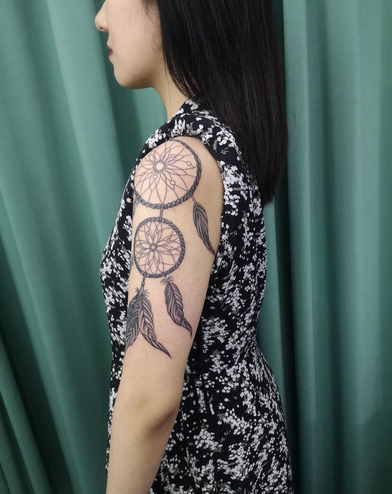 • 纹身吧推荐的披肩图腾半胛纹身图案作品展示