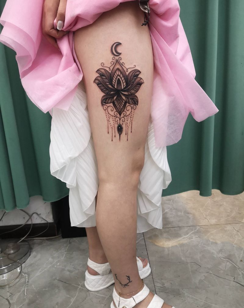 • 时尚性感的腹部莲花纹身图案