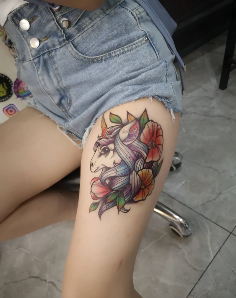• T网红王老大花腿龙纹身图片_腿部新传统纹身图案