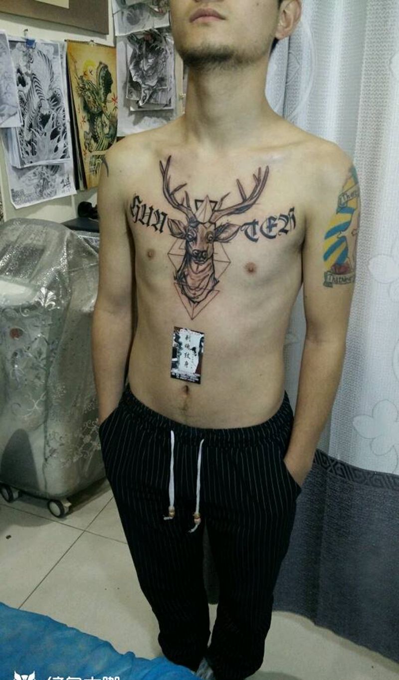当前位置: 首页 >湖北省十堰市纹身店-刺魂纹身总店纹身图案>麋鹿纹身图片_胸部传统动物成品纹身图案