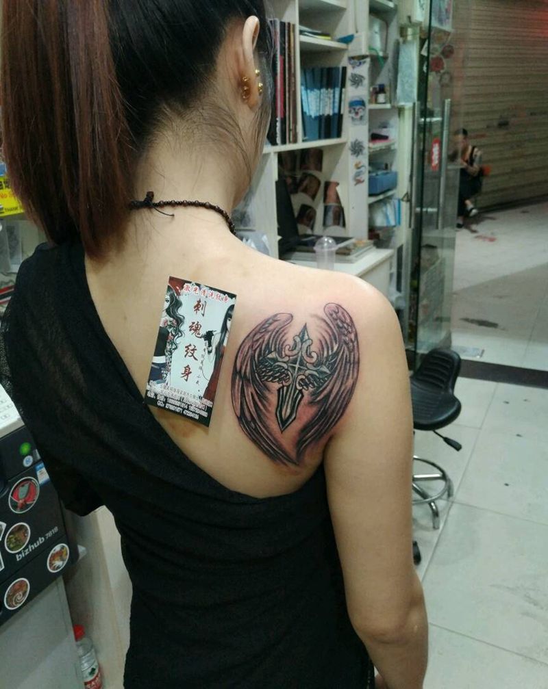 当前位置: 首页 >湖北省十堰市纹身店-刺魂纹身总店纹身图案>十字架翅膀,修改添加纹身图片