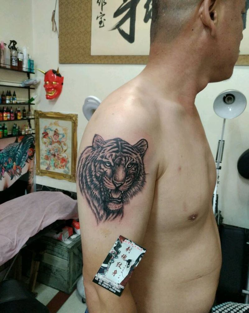 当前位置: 首页 >湖北省十堰市纹身店-刺魂纹身总店纹身图案>大老虎纹身图片_手臂传统动物原创花絮生活成品手稿纹身图案