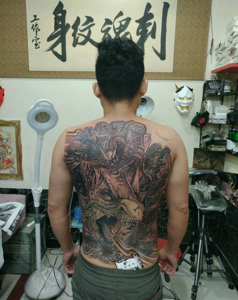 • T云龙九郎纹身图片_背部老传统云龙九郎纹身图案