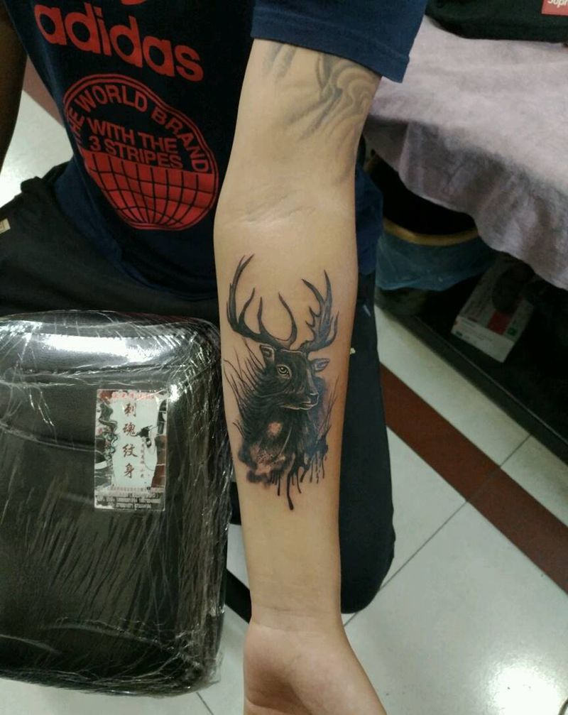 当前位置: 首页 >湖北省十堰市纹身店-刺魂纹身总店纹身图案>一鹿向钱纹身图片_传统清新几何动物原创花絮生活成品手稿纹身图案