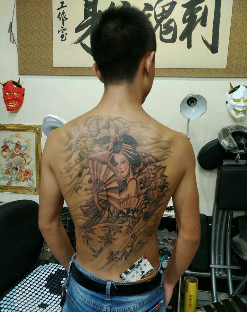 当前位置: 首页 >湖北省十堰市纹身店-刺魂纹身总店纹身图案>满背艺姬纹身图片_背部传统习俗人物原创花絮生活成品手稿插画纹身图案