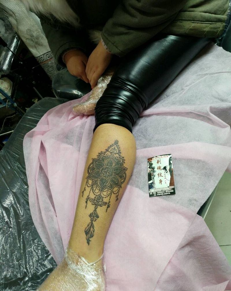 当前位置: 首页 >湖北省十堰市纹身店-刺魂纹身总店纹身图案>小腿梵花纹身图片_腿部传统清新字符原创花絮生活成品插画纹身图案
