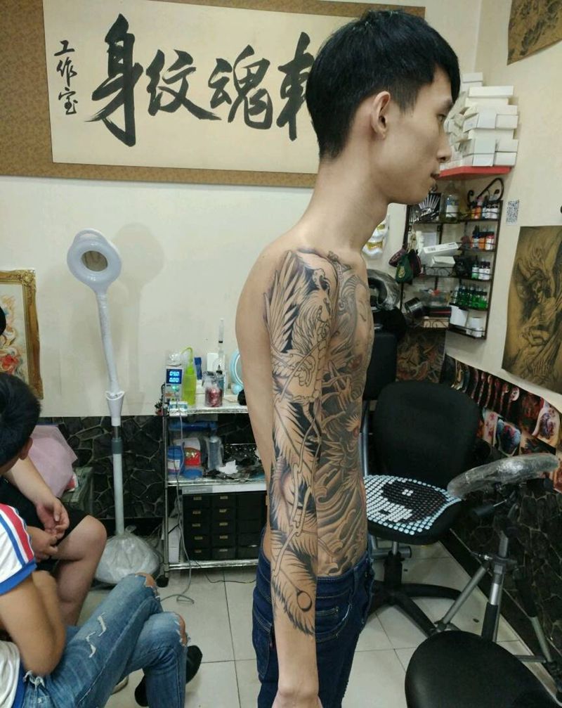 当前位置: 首页 >湖北省十堰市纹身店-刺魂纹身总店纹身图案>大花臂线条完成纹身图片_手臂传统动物原创花絮生活成品手稿纹身图案