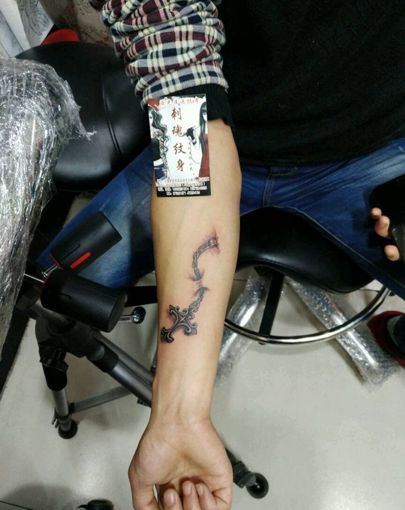 当前位置: 首页 >湖北省十堰市纹身店-刺魂纹身总店纹身图案>十字架纹身图片_手臂传统清新原创花絮生活成品手稿纹身图案