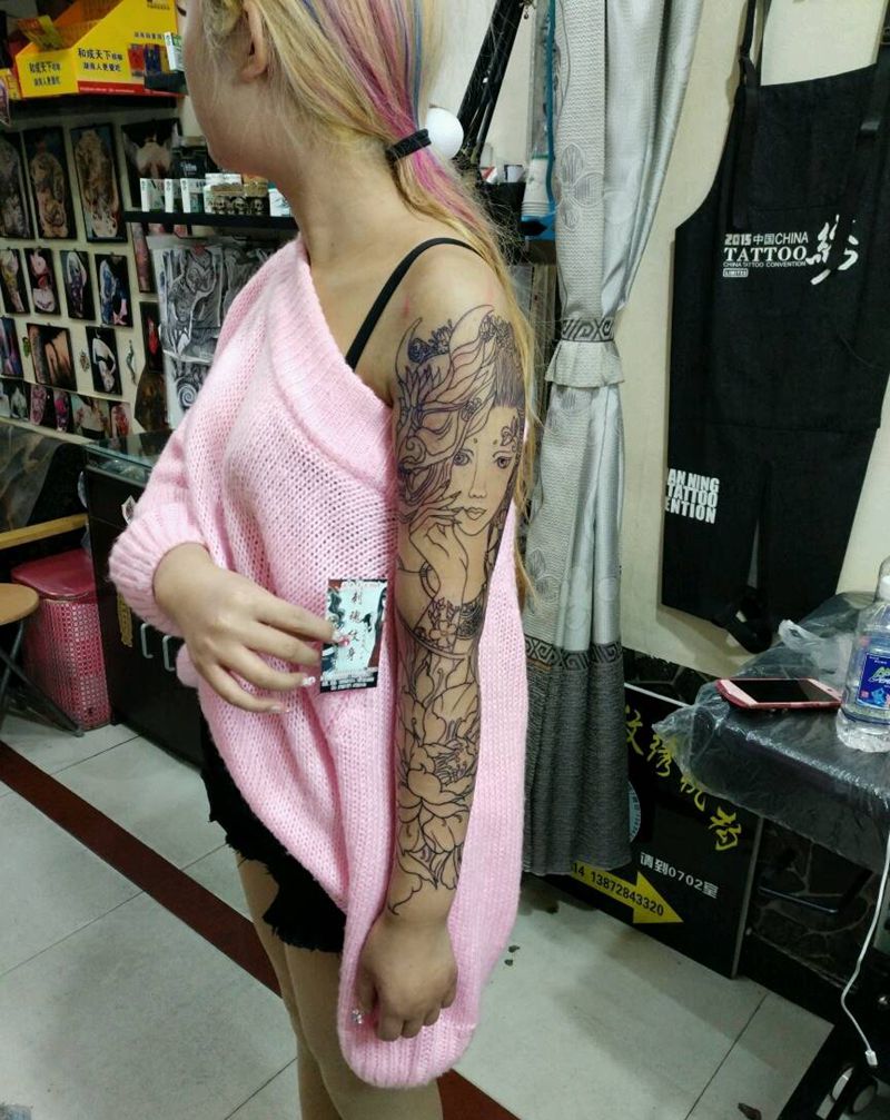 当前位置: 首页 >湖北省十堰市纹身店-刺魂纹身总店纹身图案>美女艺姬大花臂纹身图片_手臂传统人物原创花絮生活成品纹身图案