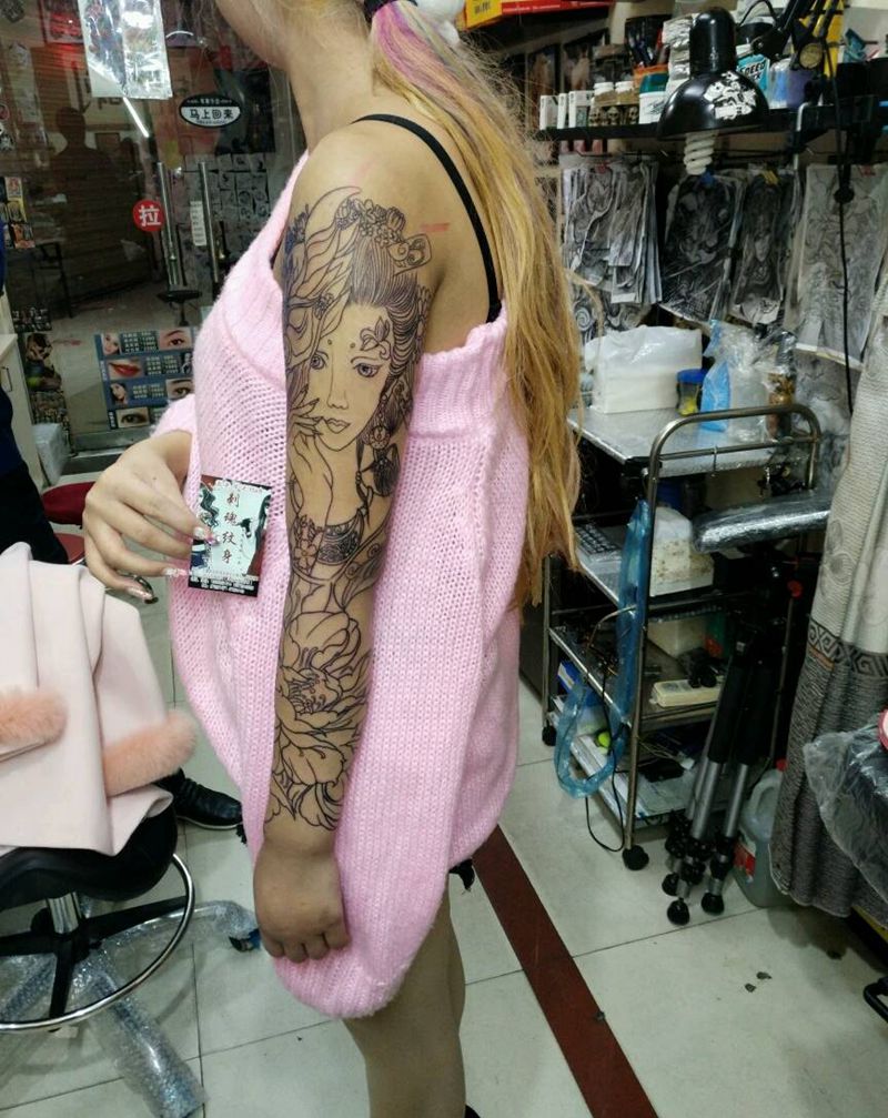 当前位置: 首页 >湖北省十堰市纹身店-刺魂纹身总店纹身图案>美女艺姬大花臂纹身图片_手臂传统人物原创花絮生活成品纹身图案