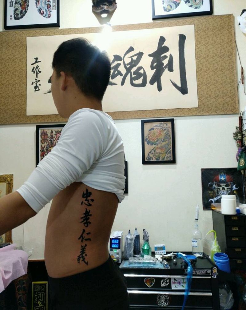 当前位置: 首页 >湖北省十堰市纹身店-刺魂纹身总店纹身图案>侧腰忠孝仁义纹身图片_腰部传统字符静物图腾原创花絮生活成品插画纹身图案