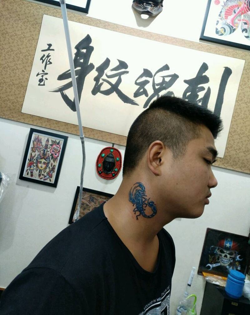 当前位置: 首页 >湖北省十堰市纹身店-刺魂纹身总店纹身图案>颈部蝎子纹身图片_颈部传统动物图腾原创花絮生活成品手稿纹身图案
