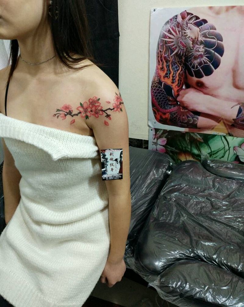 美女小肩花,纹身图片_肩部胸部传统清新植物花絮生活成品手稿纹身图案