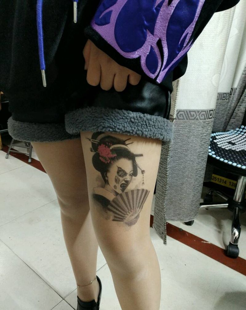 虞姬,鬼姬纹身图片_腿部传统宗教原创花絮生活成品手稿插画纹身图案