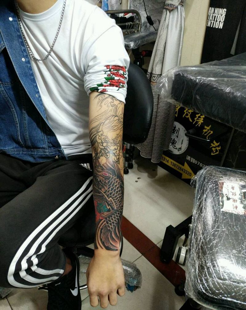 小臂锦鲤,纹身图片_手臂传统动物原创花絮生活成品手稿插画纹身图案