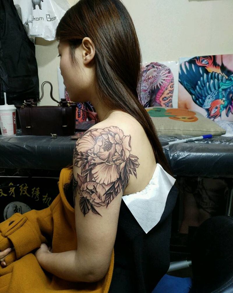 • 女性大花胸纹身_43张霸气漂亮的女性大花胸纹身图案作品
