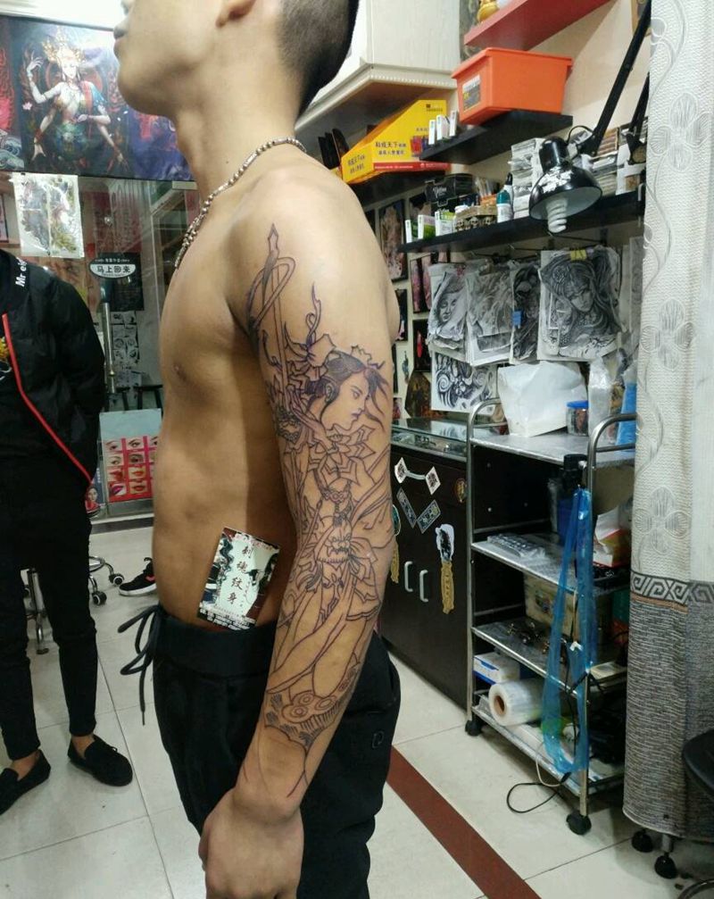 当前位置: 首页 >湖北省十堰市纹身店-刺魂纹身总店纹身图案>花臂哪吒,纹身图片_手臂传统人物宗教原创花絮生活成品纹身图案