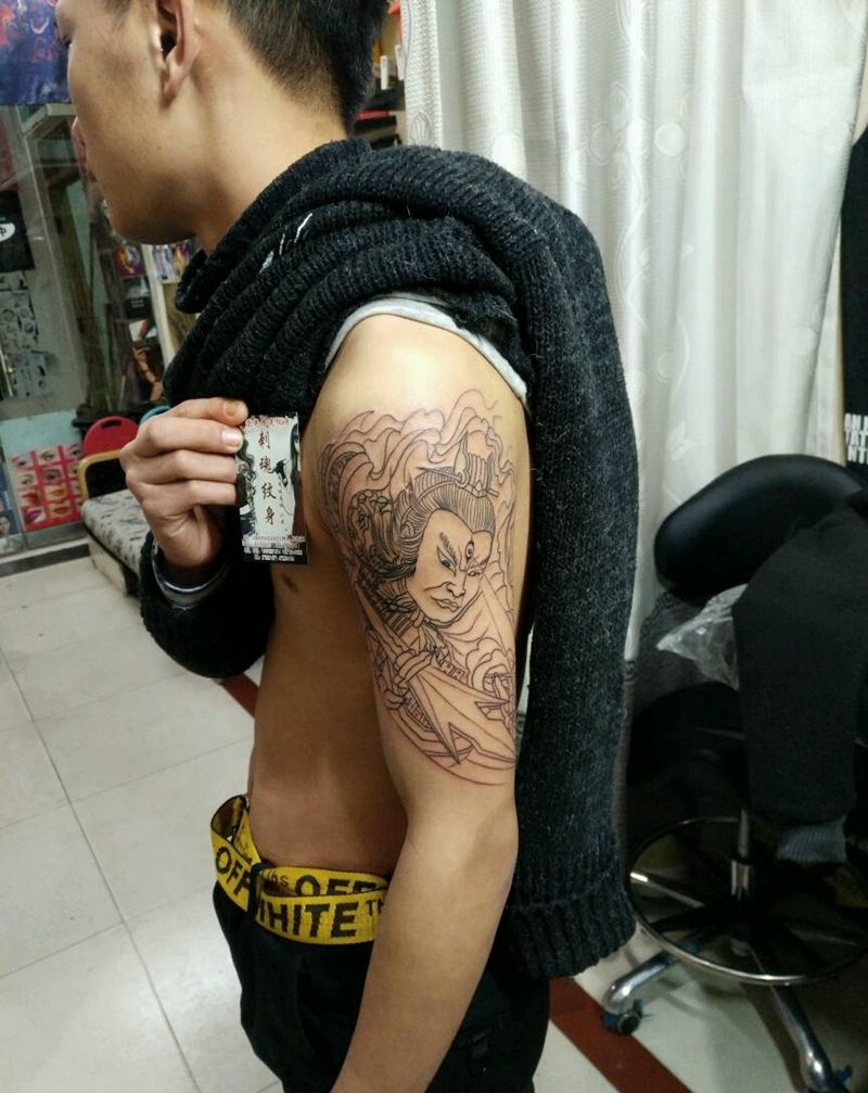 二郎神线条纹身图片_手臂传统宗教花絮生活成品纹身图案