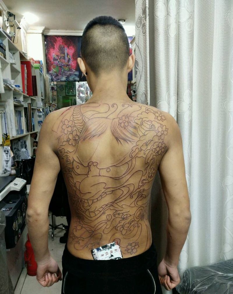 般喏制作花絮纹身图片_背部传统鬼神宗教原创花絮生活成品纹身图案
