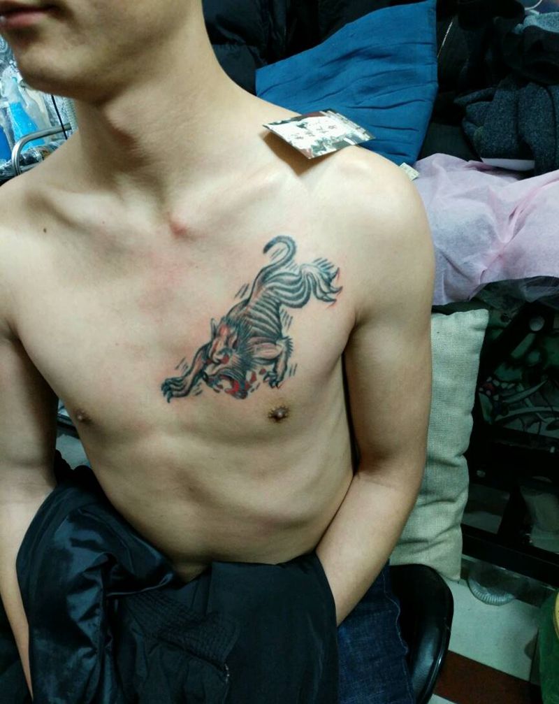 当前位置: 首页 >湖北省十堰市纹身店-刺魂纹身总店纹身图案>下山狼纹身图片_胸部传统动物原创花絮生活成品纹身图案