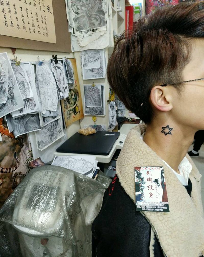 当前位置: 首页 >湖北省十堰市纹身店-刺魂纹身总店纹身图案>颈部六芒星纹身图片_颈部传统清新几何图腾原创花絮生活成品手稿纹身图案