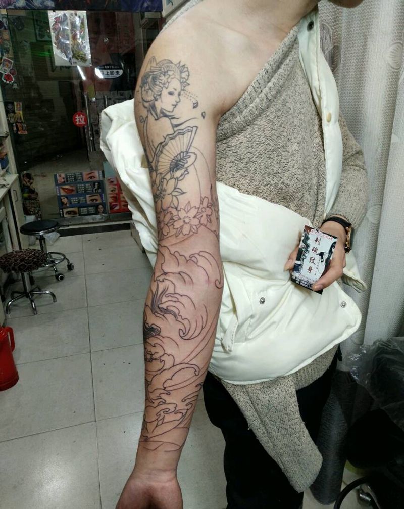 当前位置: 首页 >湖北省十堰市纹身店-刺魂纹身总店纹身图案>花臂线条纹身图片_手臂传统鬼神原创花絮生活成品纹身图案