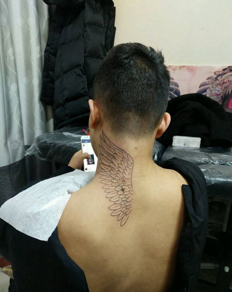 当前位置: 首页 >湖北省十堰市纹身店-刺魂纹身总店纹身图案>翅膀纹身图片_颈部传统清新宗教原创花絮生活成品纹身图案