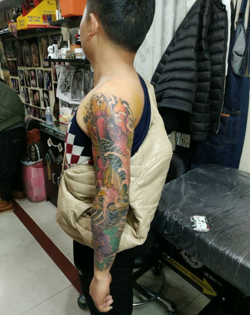 当前位置: 首页 >湖北省十堰市纹身店-刺魂纹身总店纹身图案>大花臂 遮盖疤痕纹身图片_手臂传统原创花絮生活成品手稿纹身图案