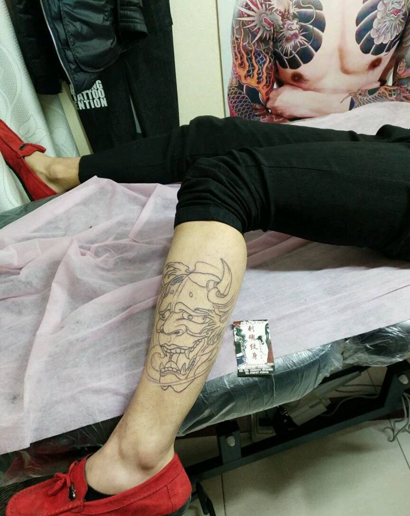 • T网红王老大花腿龙纹身图片_腿部新传统纹身图案
