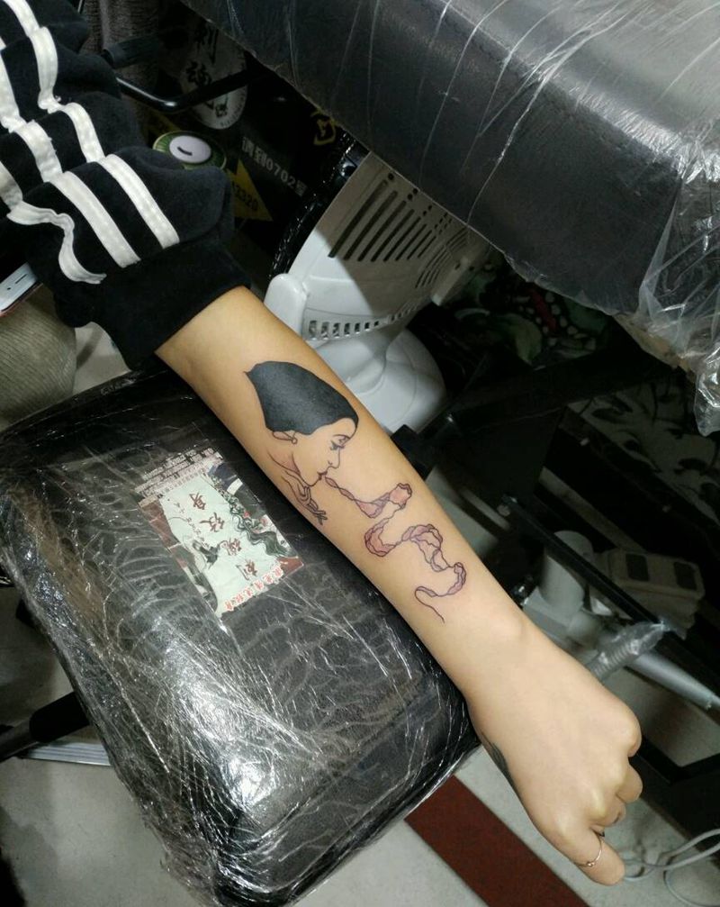 当前位置: 首页 >湖北省十堰市纹身店-刺魂纹身总店纹身图案>抽烟女纹身图片_手臂传统清新人物图腾原创花絮生活成品纹身图案