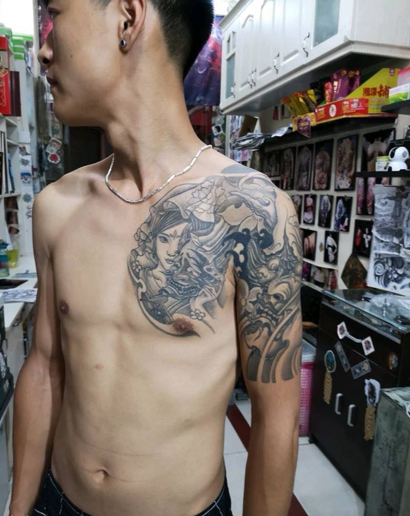 • 男性大花胸_42张优秀的男性大花胸纹身图案图片