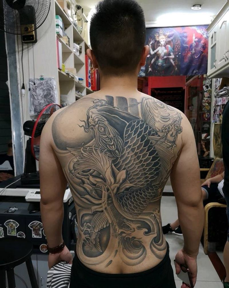 • 黑灰满背纹身图案