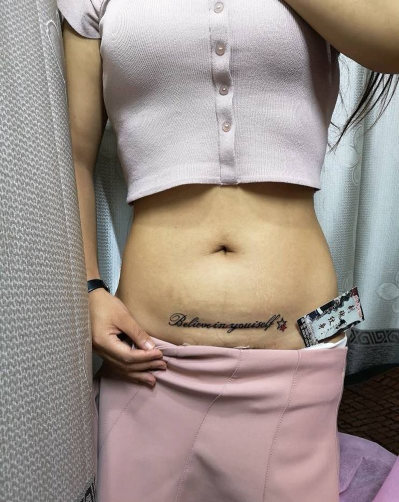 • T关于私处得爱!纹身图片_成品腹部清新字符图腾纹身图案