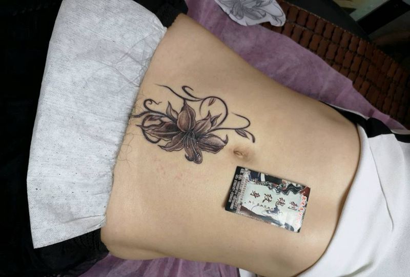 • 时尚性感的腹部莲花纹身图案