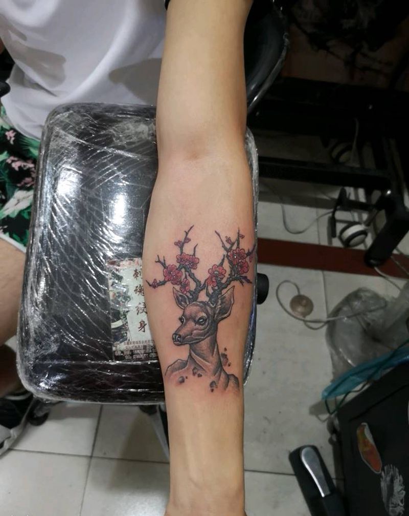 当前位置: 首页 >湖北省十堰市纹身店-刺魂纹身总店纹身图案>梅花鹿纹身图片_手臂新传统纹身图案