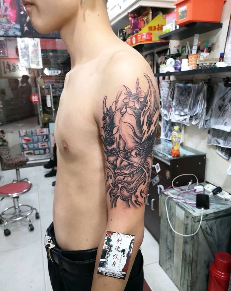 当前位置: 首页 >湖北省十堰市纹身店-刺魂纹身总店纹身图案>大臂般喏纹身图片_手臂新传统纹身图案