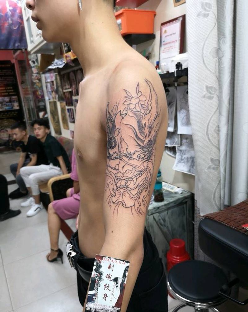 当前位置: 首页 >湖北省十堰市纹身店-刺魂纹身总店纹身图案>大臂般喏纹身图片_手臂新传统纹身图案