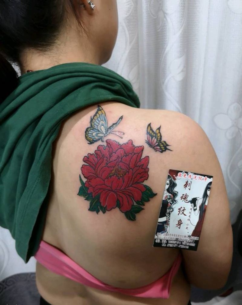 当前位置: 首页 >湖北省十堰市纹身店-刺魂纹身总店纹身图案>后肩牡丹蝴蝶纹身图片