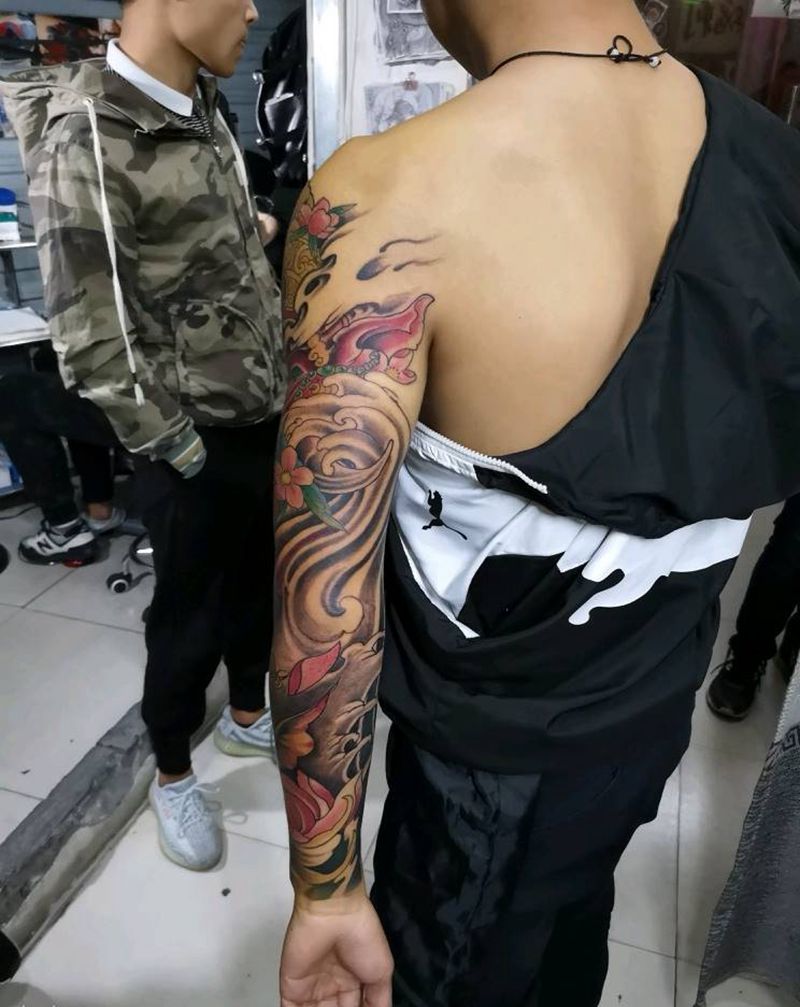 当前位置: 首页 >湖北省十堰市纹身店-刺魂纹身总店纹身图案>象神鲤鱼花臂纹身图片