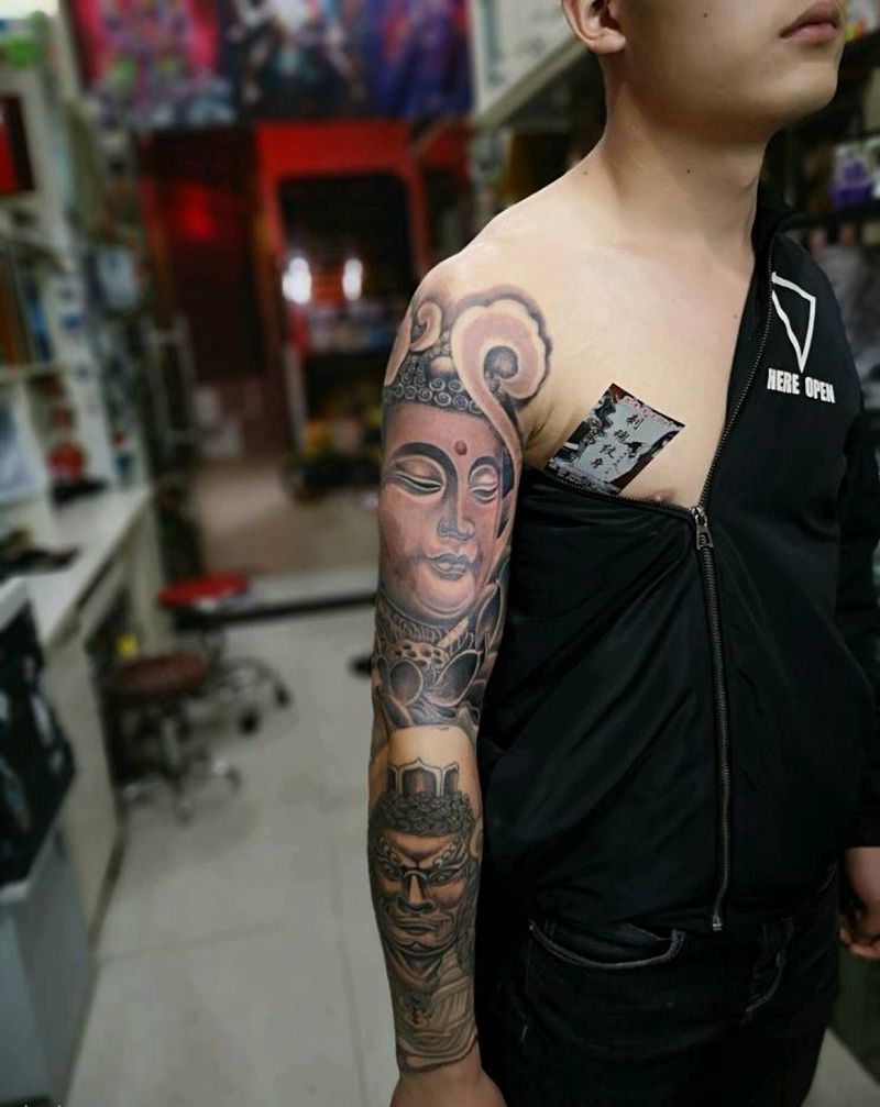 当前位置: 首页 >湖北省十堰市纹身店-刺魂纹身总店纹身图案>佛与不动明王大花臂纹身图片