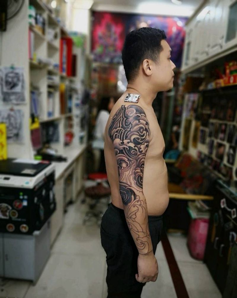 当前位置: 首页 >湖北省十堰市纹身店-刺魂纹身总店纹身图案>水浪花臂纹身图片