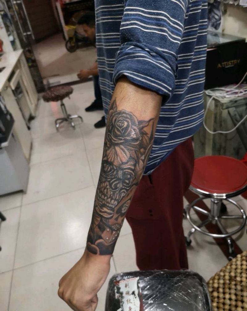 当前位置: 首页 >湖北省十堰市纹身店-刺魂纹身总店纹身图案>包小臂骷髅纹身图片