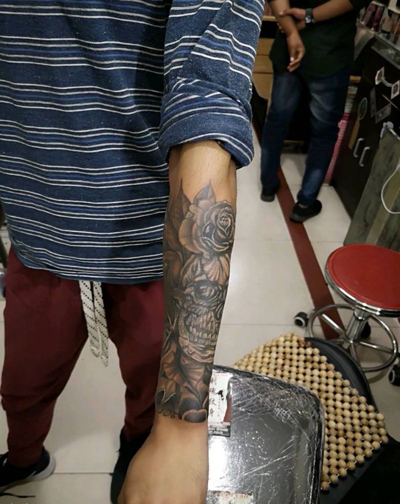 当前位置: 首页 >湖北省十堰市纹身店-刺魂纹身总店纹身图案>包小臂骷髅纹身图片
