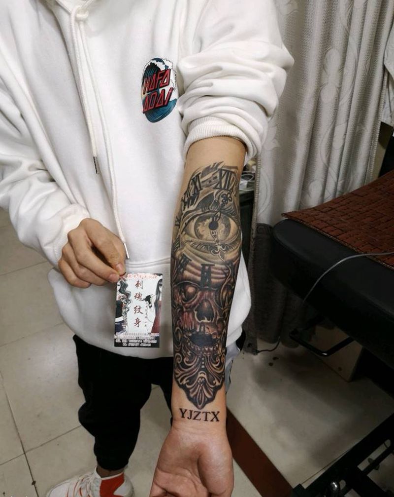 当前位置: 首页 >湖北省十堰市纹身店-刺魂纹身总店纹身图案>包小臂骷髅纹身图片