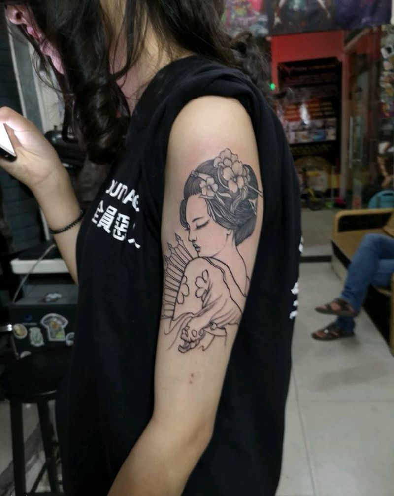 当前位置: 首页 >湖北省十堰市纹身店-刺魂纹身总店纹身图案>艺伎线条纹身图片