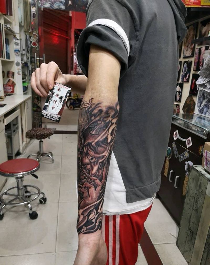 当前位置: 首页 >湖北省十堰市纹身店-刺魂纹身总店纹身图案>艺伎包小臂纹身图片