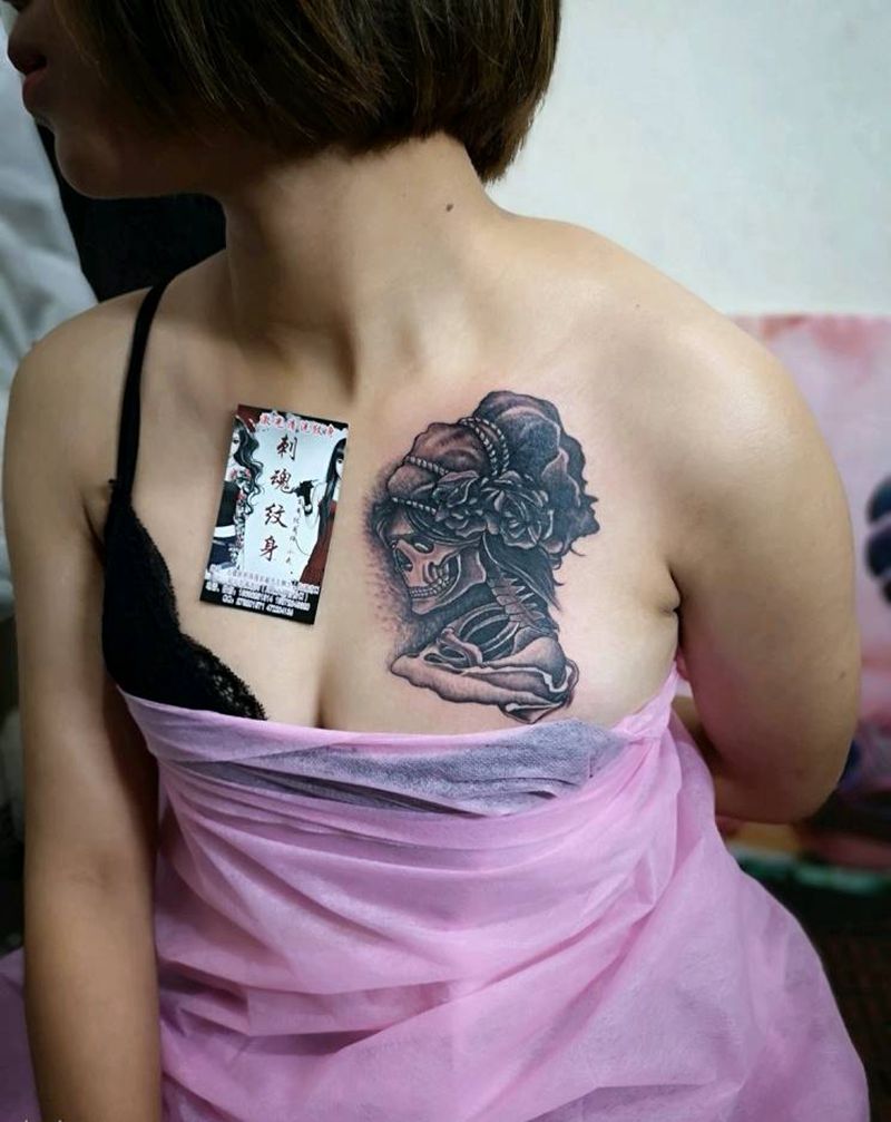 • 女性大花胸纹身_43张霸气漂亮的女性大花胸纹身图案作品
