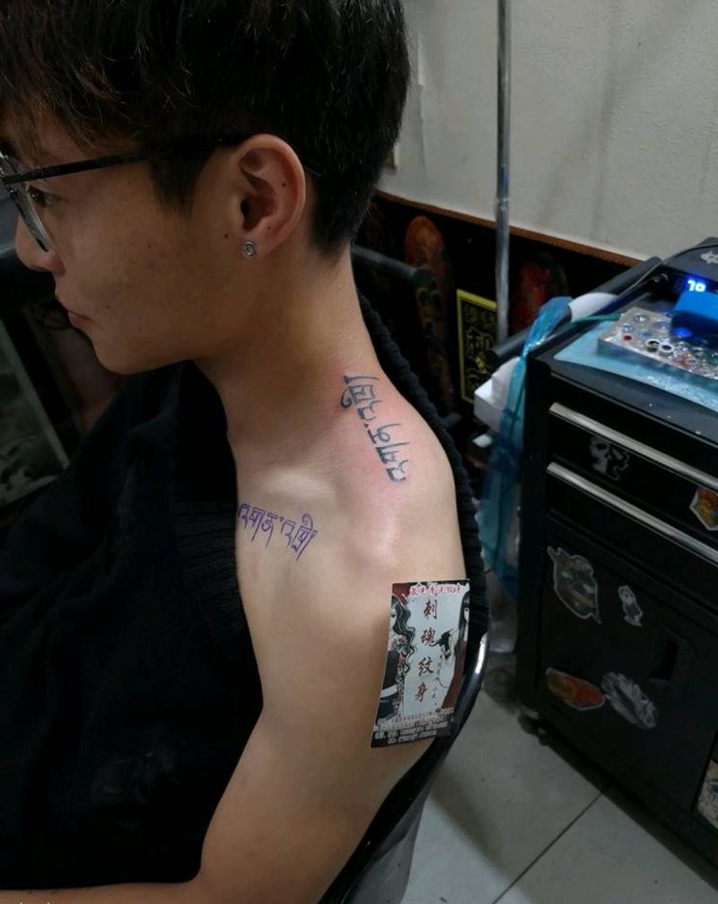 当前位置: 首页 >湖北省十堰市纹身店-刺魂纹身总店纹身图案>肩 梵文纹身图片