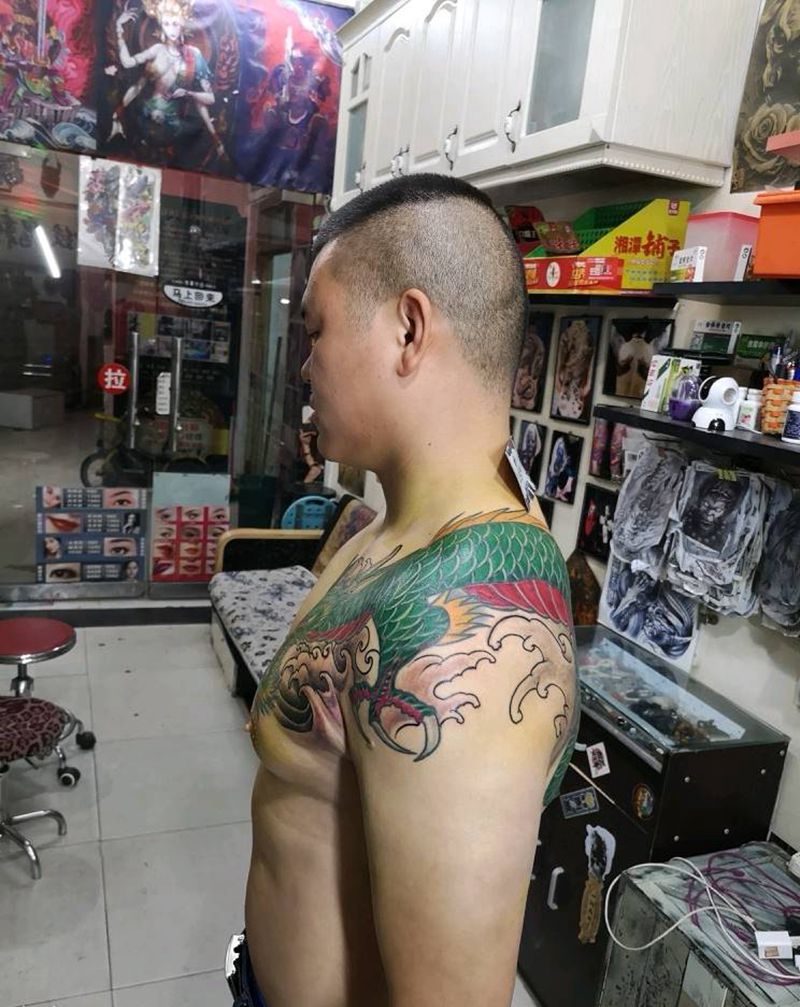 当前位置: 首页 >湖北省十堰市纹身店-刺魂纹身总店纹身图案>过肩龙纹身图片