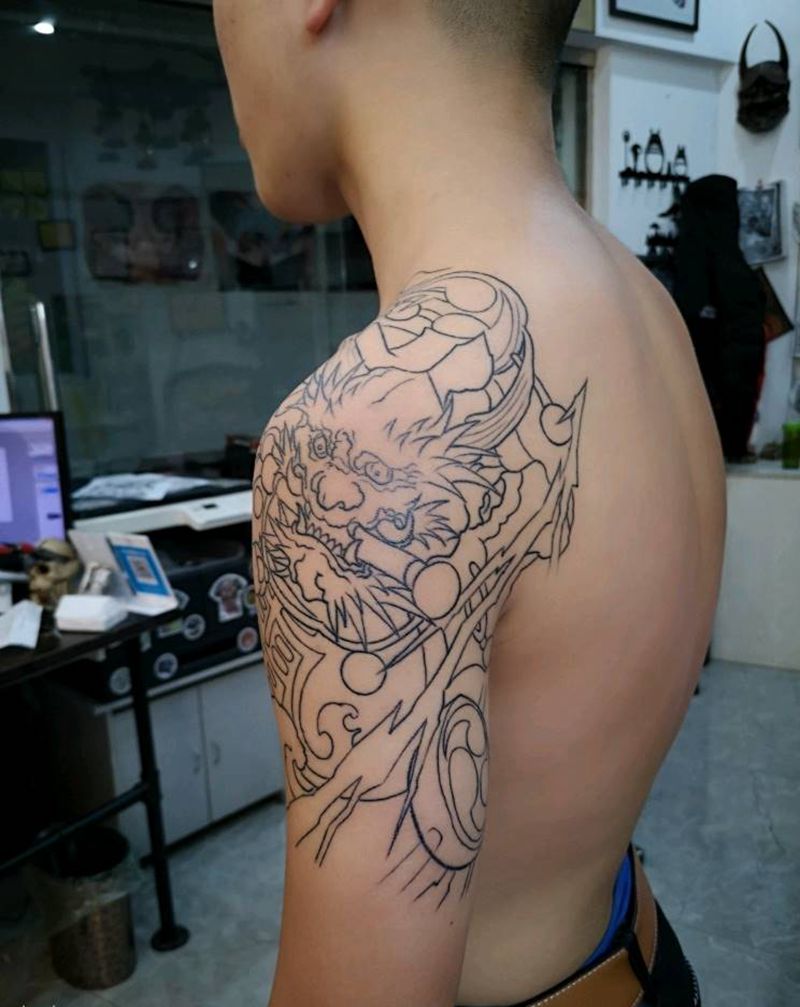 • 纹身吧推荐的披肩图腾半胛纹身图案作品展示